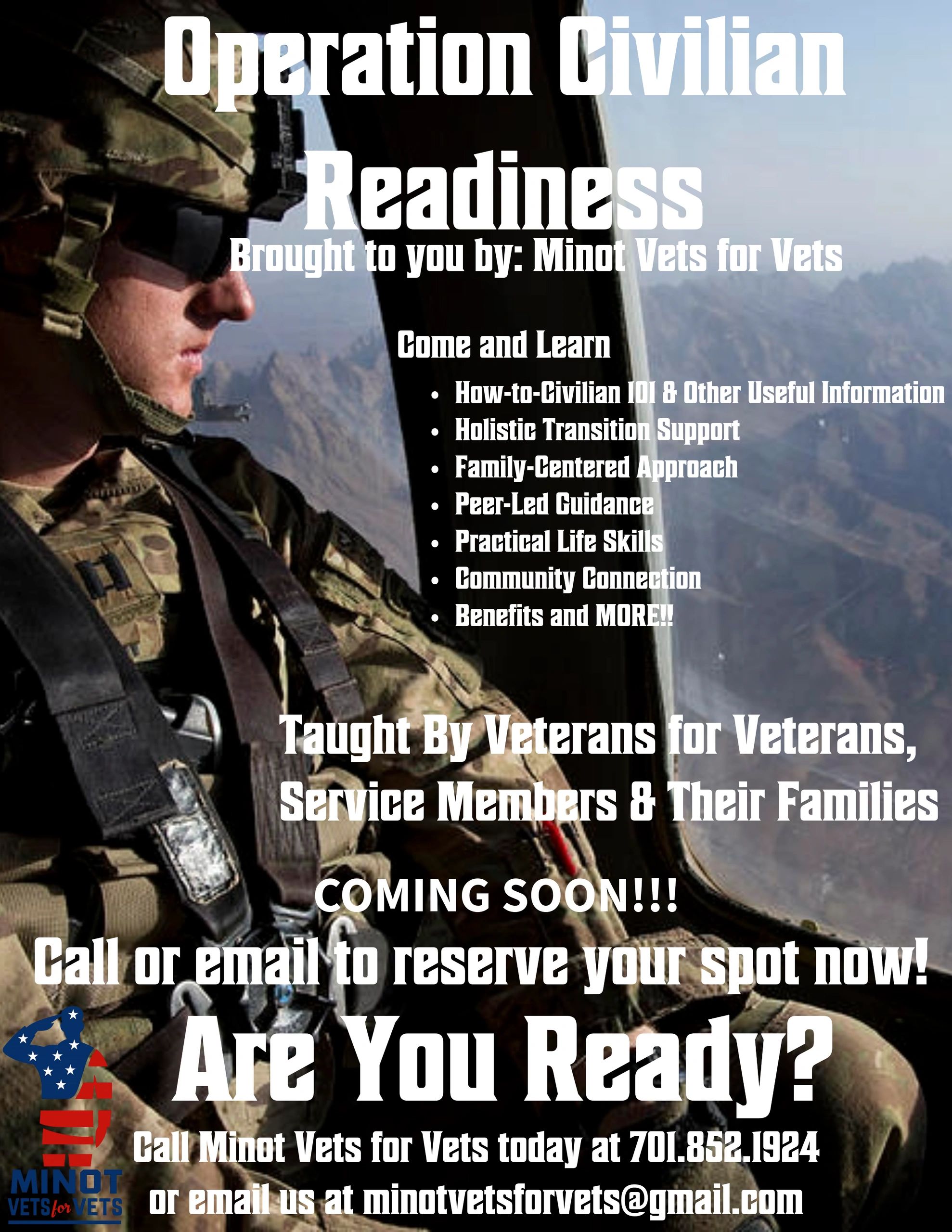 An IPS training has been scheduled to begin on March 25, 2026, to run four hours per week for 10 weeks. Classes will take place at the Minot Vets for Vets Center on Wednesdays from 5:00 - 9:00 pm.